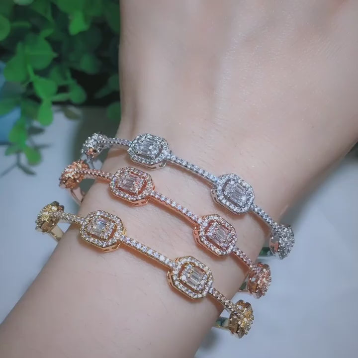 Cubic zircon cz inlaid copper gold plated cuff Bracelet